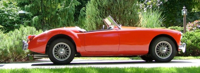 So I thought to myself, perhaps I should consider changing the oil in my little Chinese-red racer.  This is the first summer that I have had the opportunity to drive my ‘58 MGA roadster.  During the past two years I have had to buy a steering mechanism all the way from New Zealand, new springs for the front suspension, a rebuilt windshield wiper unit, side  curtains, the list goes on and on……